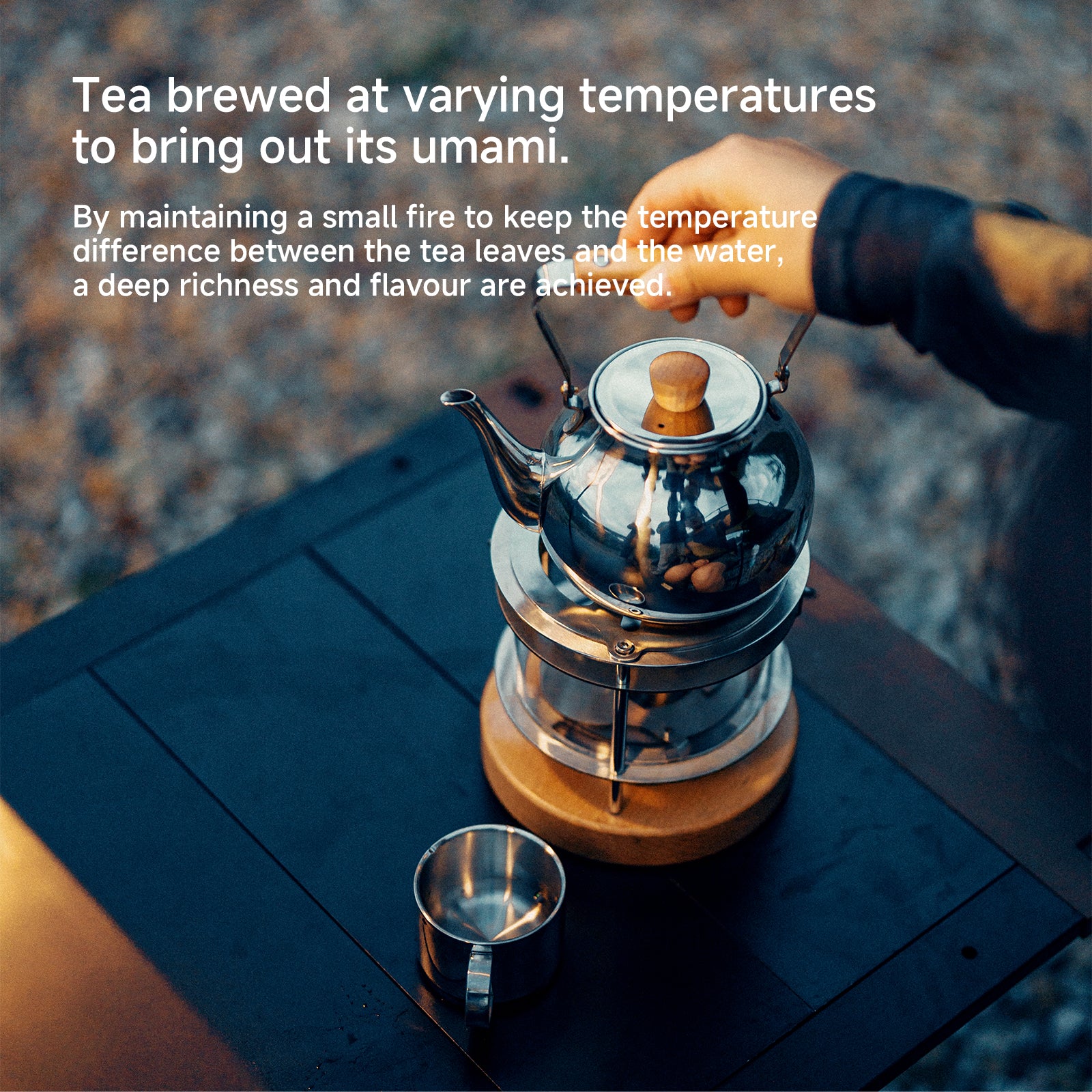 The heat-resistant glass cover is heat-resistant and crack-resistant, allowing you to observe the flame's changes in real time. The flames shine through the glass, creating a warm glow and a soft light filter for camping at night, enhancing the ritual of tea brewing.